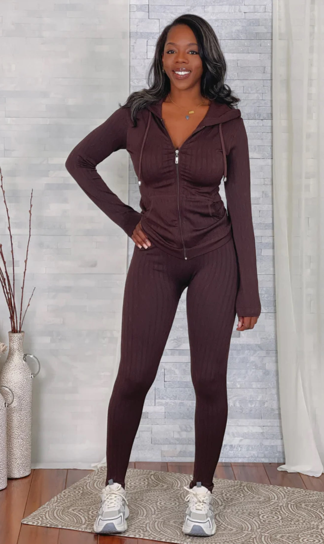Ribbed matching set featuring a zipp up hoodie jacket and matching tights